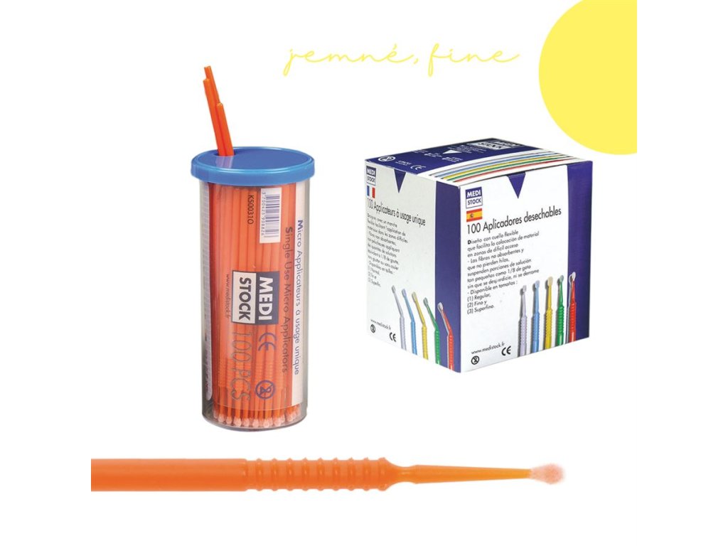 Mikro aplikátory od firmy Medistock, vhodné pro aplikaci zubních přípravků.