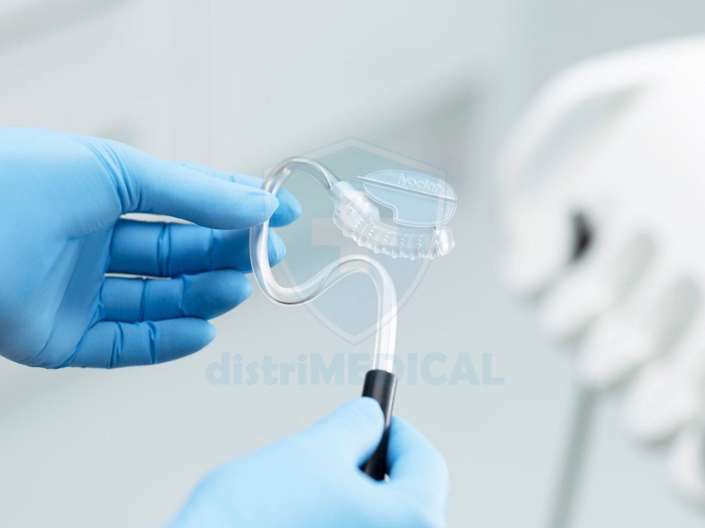 - Flexibilní hadička zajišťuje stabilní usazení na dolní čelisti.